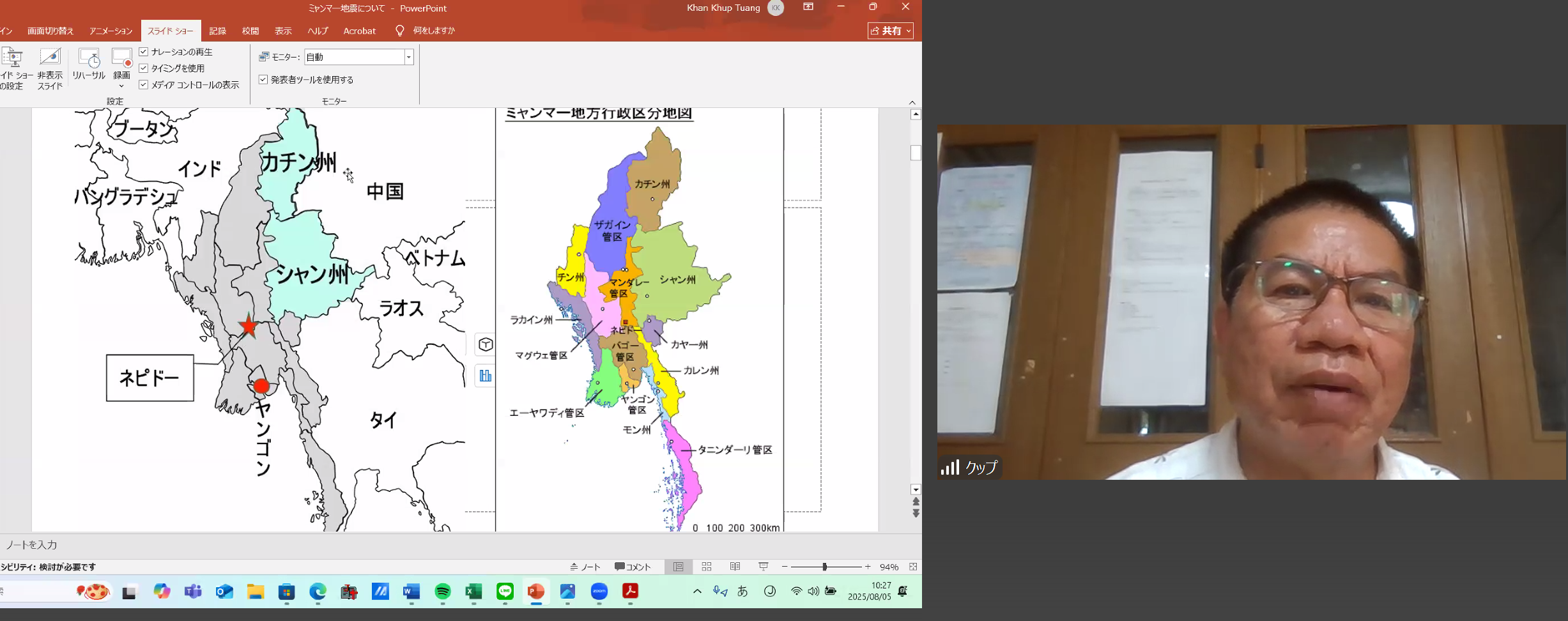 クップ先生から、地震の被害状況、また支援や復興が遅れている状況、そして軍事政権下での大変な状況をお分かち頂きました。