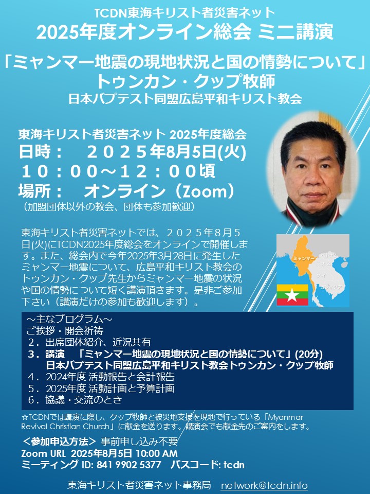 TCDN東海キリスト者災害ネット 2025年度オンライン総会 講演会